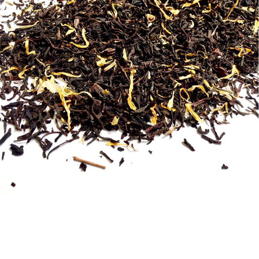Blended black tea combines the bold, robust taste of black tea with a variety of added flavours, from fruits and flowers to spices and herbs. These blends are created by infusing black tea leaves with natural ingredients like vanilla, citrus peel, berries, or warming spices like cinnamon and cardamom, resulting in rich, aromatic, and diverse flavour profiles.
